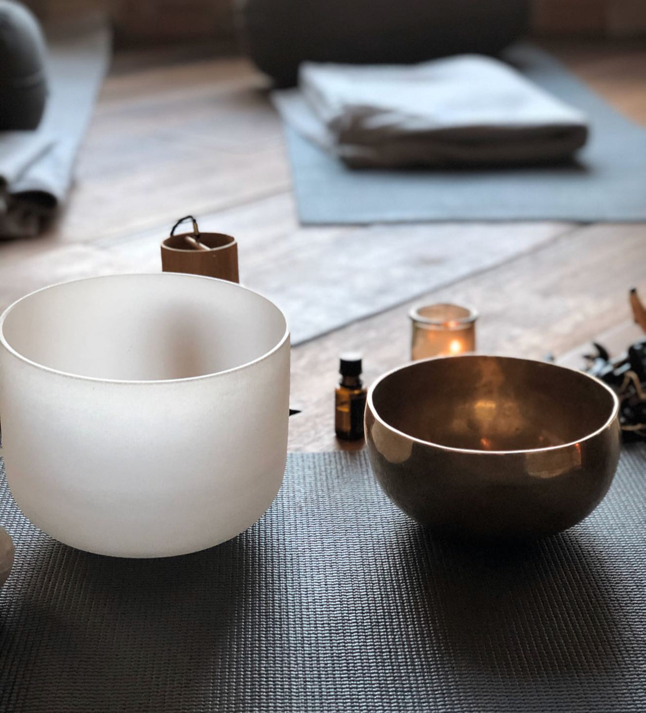 The subtle vibrations can be very precisely directed by placing the instruments on or near a tensed or blocked area of your body. The bowls are struck with a felt mallet, creating vibration which leads to first loosening the stagnant energy and then helps it to be rearranged.