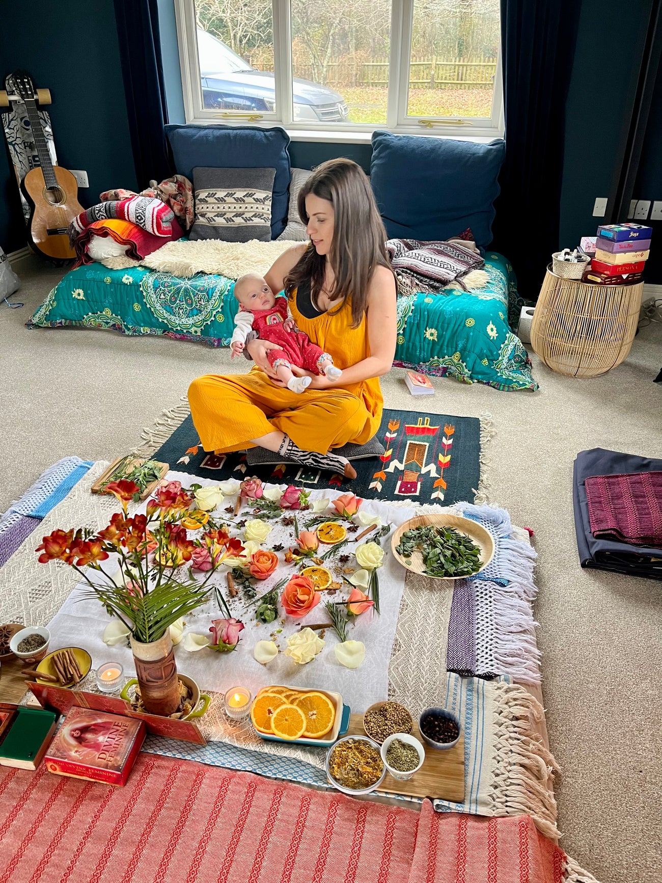 🌹Mandala making - create this intention from flowers and herbs on a white piece of muslin cloth. These are then brewed to use later in your sacred water.