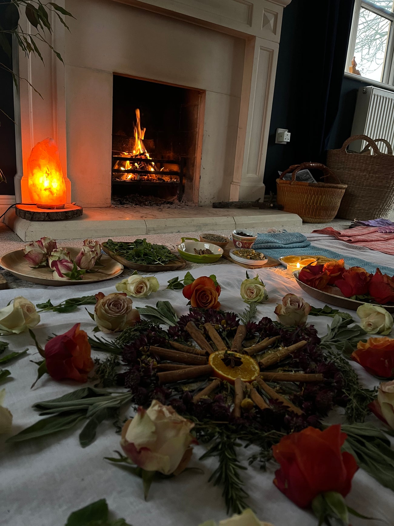 💫Mandala making - create this intention from flowers and herbs on a white piece of muslin cloth. These are then brewed to use later in your sacred water.