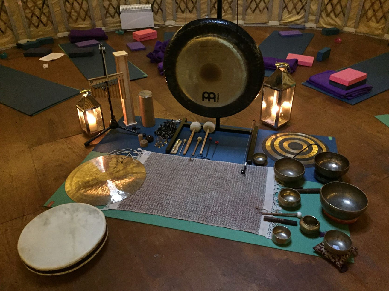 Introductory workshops on sound healing explore the theory and practice behind the modality, and include self help techniques using the voice, such as humming, toning and simple mantra. There is also an opportunity to try out and experience a variety of sound healing tools and instruments, including tuning forks, singing bowls, gongs and percussion.